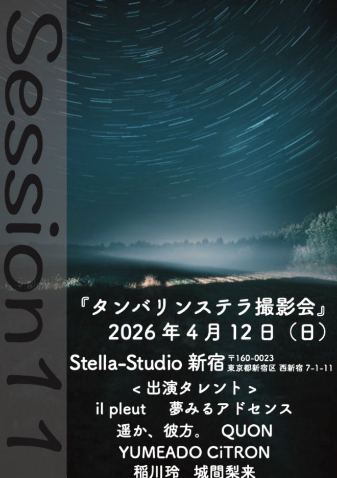 タンバリンステラ撮影会season11 日時:4/12(土) 時間:11:00~18:00 会場:Stella-Studio新宿 また2026年5月17日(日)にseason12の開催も決定2026/04/08EVENT