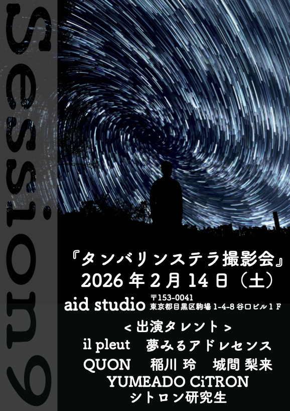 タンバリンステラ撮影会season9 日時:2026年2/14(土) 時間:12:00~19:30 会場:aid studio 〒153-0041 東京都目黒区駒場1-4-8谷口ビル1F…2026/01/28EVENT